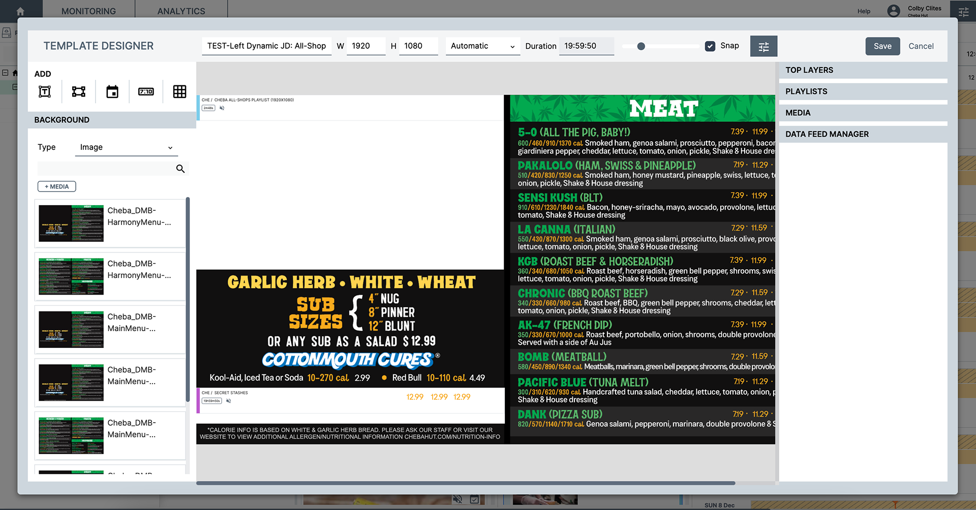 Digital Menu Board Design for Cheba Hut "Toasted" Subs